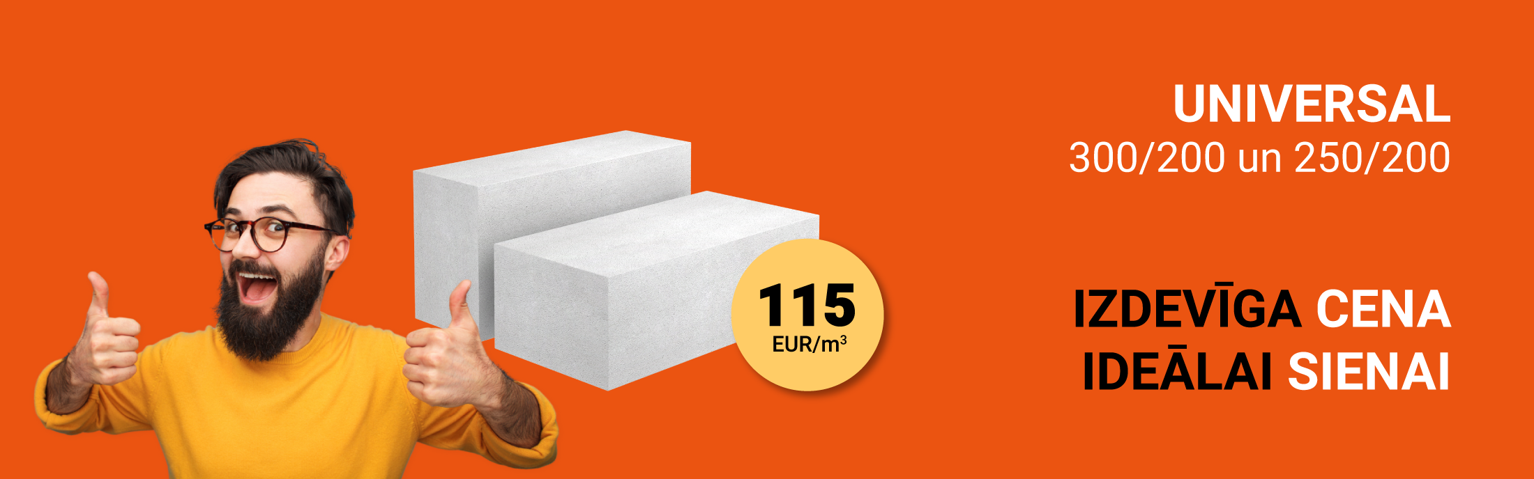 Bauroc vasaras akcija blokiem UNIVERSAL 300/200 un 250/200 – 115 EUR/m3 ar PVN.