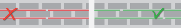 Stiegrojuma savienojuma vietas mūrī nedrīkst atrasties viena zem otras, tām jāatrodas dažādās vietās. (Attēls Nr. 5)